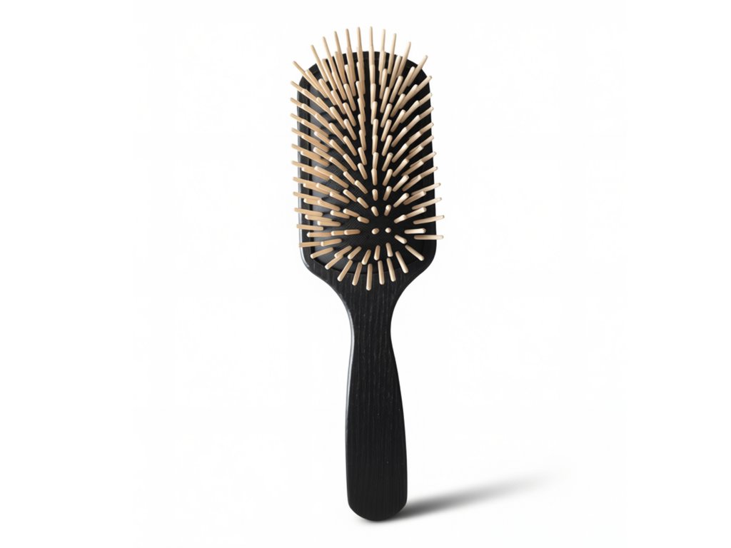Ručne vyrobená kefa z čierneho jaseňového dreva. Jemne kĺže vlasmi a bez ťahania rozčeše aj husté či veľmi dlhé vlasy. Kolíky z hrabu vo vzduchovej podložke z prírodného kaučuku šetrne masírujú pokožku hlavy, zlepšujú krvný obeh a posilňujú vlasové korienky. Vlasy netrhá, neelektrizuje a výrazne uľahčuje rozčesávanie - jedna kvalitná kefa na dlhé roky.